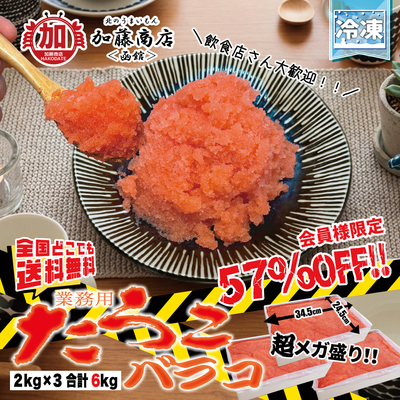 会員限定57%OFF ★ 業務用 たらこバラコ 2kg入×3 合計6kg 【全国送料無料】<冷凍> 魚卵 たら子 ばら子 業務用 お得 お徳 飲食店 居酒屋 寮 施設 仕入れ メガ盛り